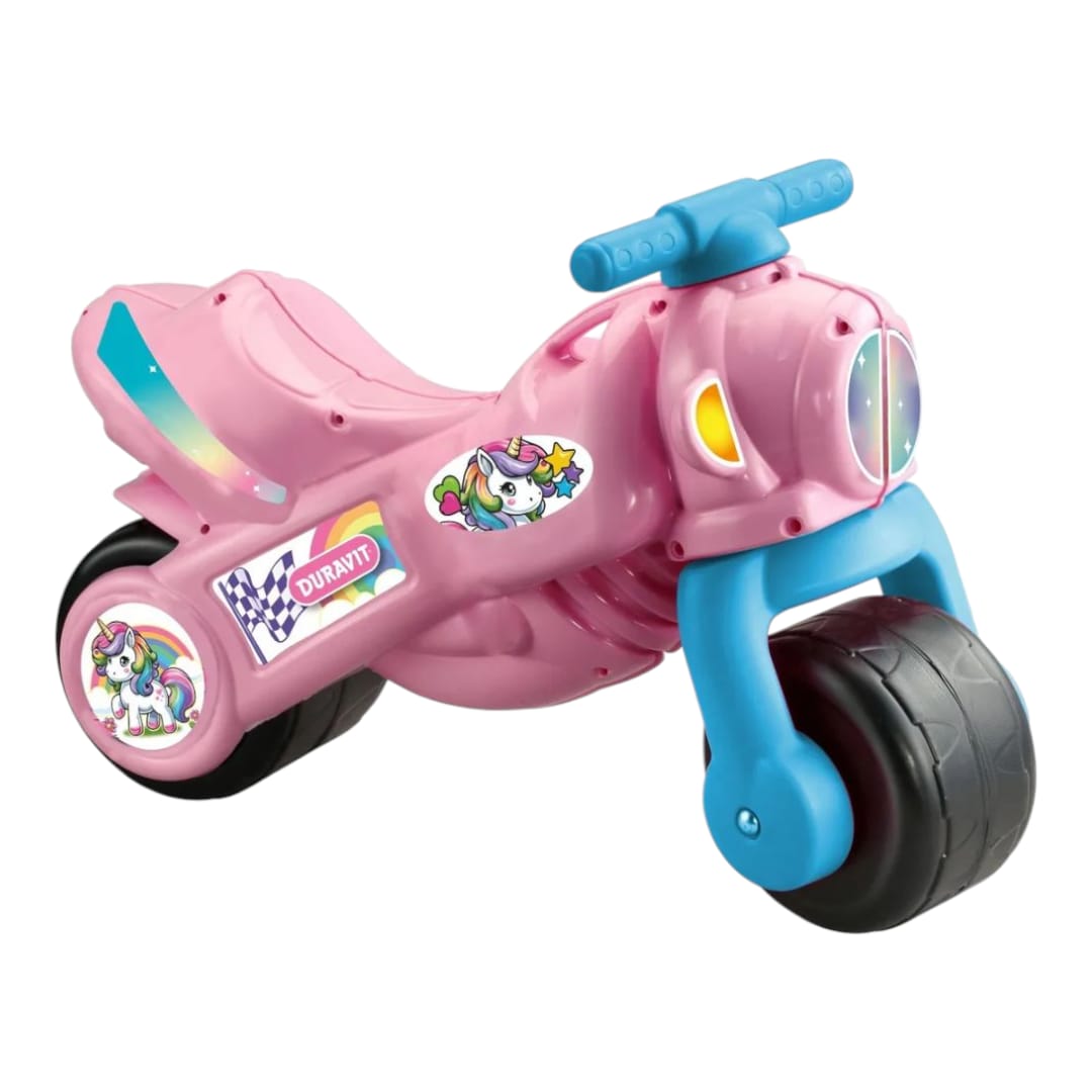 Andador Pata Pata Moto Fuego de la marca Duravit. Está diseñado para acompañar el desarrollo motriz de niños y bebés a partir de los 18 meses.